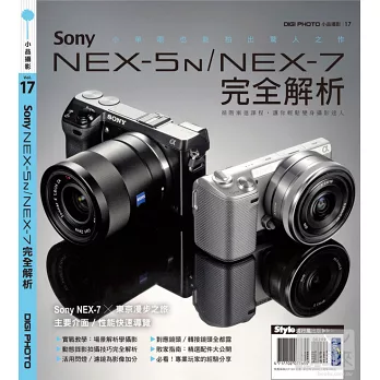 針對中/進階玩家,Sony計有推出NEX-5N/NEX-7兩款機種搶攻市場,雖然兩者產品定位不同,但又該如何挑選及運用,才能買到符合自己拍攝需求的相機機種?為了解決各位疑惑,DIGIPHOTO編輯團隊特別推出「Sony NEX-5N/NEX-7完全解析」新書,從介面/選單差異、實拍應用教學、軟體後製編修、鏡頭/配件選購到達人使用心得分享……等,本書都有詳細介紹,是近期或未來有意入手NEX系統玩家不可錯過的學習工具書。