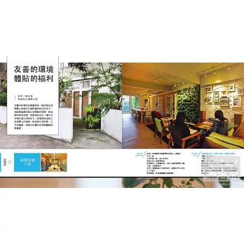 本書收錄的許多工作室,有小至二三人的工作室、也有幾十人空調大樓的辦公室。但這些工作者不管是員工還是老闆,都開始學習用不一樣的眼光及作法來面對工 作或事業:一樣是OA隔板,換個板材包覆作法,讓木頭味出現在公司裡;誰說上班族一定要是外食族!一個能夠簡單開伙的廚房,不但能凝聚同事的感情、吃得更 健康,甚至能為在地小農提供一份助益;植生牆不是建商使用在戶外的專利,一條走道、一面幾尺的室內牆,都能成為辦公室的好風景及不插電室內空氣清淨機!三 五人使用的小型工作室,能夠分享給社區鄰居或藝文團體,成為舉辦活動的場所!