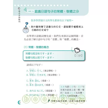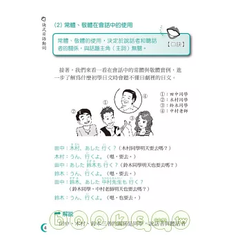 目前台灣的日語學習者分成學習「學校文法」與「新式日語教育」兩大主流,兩種學習法的動詞規則也略有差別:學校文法以辭書形為動詞基本變化形,新式日語教育則以��形為動詞基本變化形。因此本書同時收錄兩種動詞變化規則,希望能讓更多日語初級學習者建立對動詞使用的基本概念與學會動詞變化,是一本適合所有日語初學者的最佳學習書。