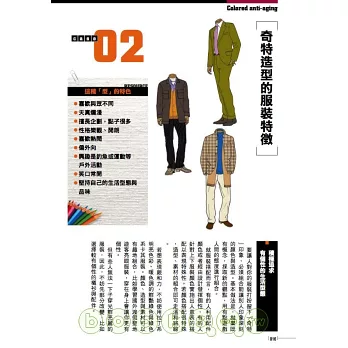 所謂用色彩顛覆年齡的服裝搭配方法,並非一味地選擇鮮艷漂亮的服裝。重點在於配合自己的個性,發揮特色,而且還得進行整體造型與顏色調和,才能自然呈現更有魅力的個性,讓您更吸引人。