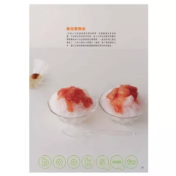 藍莓糖漿會在冰上揮灑出深淺不一的美麗紫色。由於是用整顆藍莓下去煮,含在嘴裡還可以感覺到顆粒的存在,好吃又好玩。和進口的藍莓比起來,國產的藍莓比較新鮮、甜度也比較高。不妨在盛產藍莓的七月先作好一大堆放著,如此一來,一整個夏天都可以吃到了。如果不想費太多工夫的話,建議使用冷凍的藍莓。
