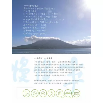 書中的一句話,一個人,一個畫面,都發生在沖繩和九州,很多日本人終生也不曾涉足的土地,而不是熱門的本州和北海道。這場從邊陲逼近日本的旅行,可能會巔覆一般人對日本的印象,無論如何,協力車環中國海的旅行,就從翻開這本書開始了。