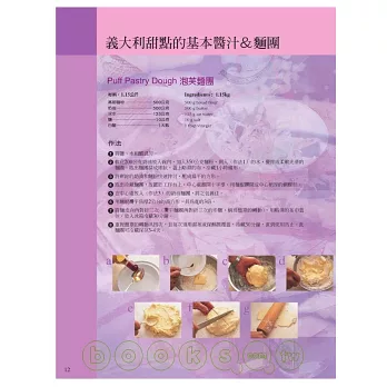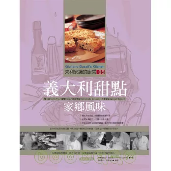 本書分為塔&派(Tart&Pie)、蛋糕(Cake)、家庭糕點(Homemade Dessert)、特製甜品(Special Dessert),以中英文對照加上詳細步驟圖,共收錄:蛋白檸檬塔、乳酪杏仁蛋糕、祖母風味派、彼若多餅乾、李子杏桃酥餅、草莓醬米布丁、安瑟式甜甜圈、酥皮蘋果派、聖誕蛋糕、嘉年華甜點等近50道家常甜點,以更貼近義大利的方式,呈現樸實中滋味綿長的義式風情。