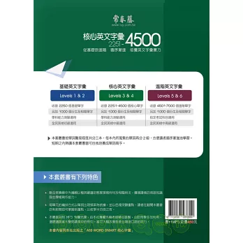 .本叢書按單詞難易程度共分基礎、核心、進階三冊,每冊所蒐集的單詞再分 2 級,方便所有同學按程度循序漸進地學習。短期之內熟讀本套叢書當可自我培養成單詞高手。