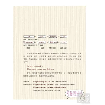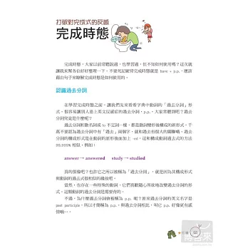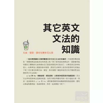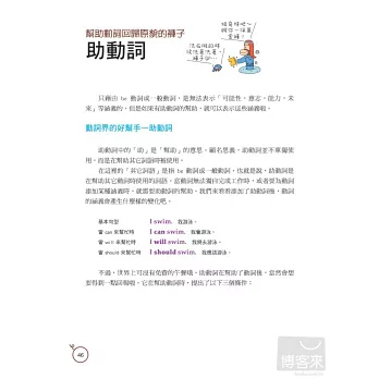 本書的每頁編排刻意控制字數,並輔以逗趣圖解,讀來流暢輕鬆。每個文法概念都有實際例句;淺白的文字幫你一一釐清觀念,避免混淆。一天看完英文文法,一天學會英文造句!沒學好文法的人、想接觸英文的人,統統都可以看,統統都可以學會。如果你曾經放棄,別再錯過這本文法書拯救你的機會!