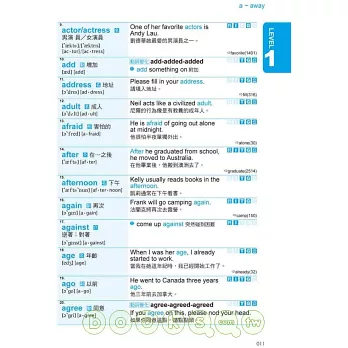全書單字依照大考中心《高中英文參考詞彙表》分為6個LEVEL,並且比照美國學生學習程度,循序漸進的學習,輔以燈號標示,絕對適用於國中基測、大學學測、指定考試、GEPT、NEW TOEIC、留學考試(IELTS、TOEFL)、高普考等各類英文測驗。
