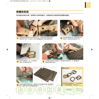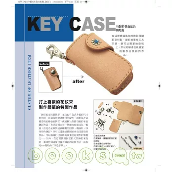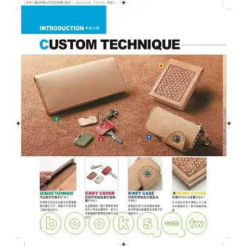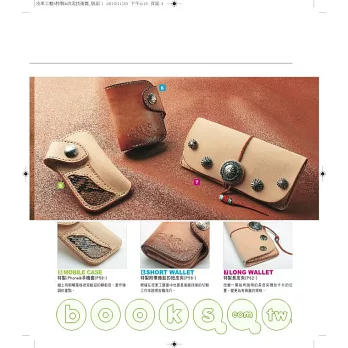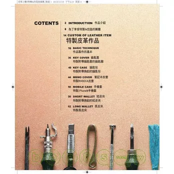 書中示範了使用裝飾用皮革、金屬零件等材料,讓原有皮件煥然一新的技巧,只要掌握其中的精髓,就能夠隨心變換造型與組合,讓皮件製品變得一點都不單調。