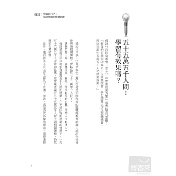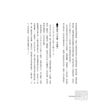 本書顛覆過去觀念,建議讀者若不能有效學習,不學反而更好!因為「不學」的人生沒有限制、沒有刻板印象、沒有樣板與標準。這樣我們擁有的是自己的信念,只要開始行動,成功和目標反而離得很近、很近。