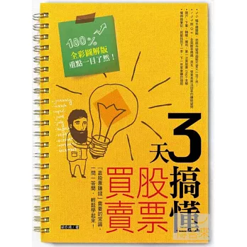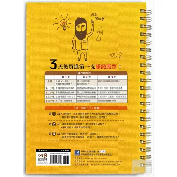 更棒的是,老師把複雜的股票買賣問題簡化成12個單元,只要3天就能全部搞定喔!以後再也不怕聽不懂專業術語,不管是大盤漲跌、財報數字、外資報告,或是技術分析6大指標,和股票有關的節目和雜誌都能看得懂了。