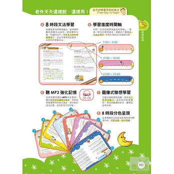 根據每單元的情境會話,延伸補充數則相關文法說明。透過書中生動、有趣的句子,所有文法規則都變簡單了。從此不用再死記硬背,自然而然學會文法。