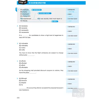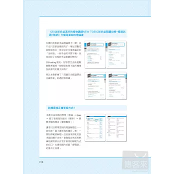 本書以不同於其他書的解說為驕傲。除了理論說明以外,解題的部分比起任何書也更詳細。例如新多益考試的公告題、廣告題、信件題等,詳細說明各種題型的出題方向,5秒解決新多益。