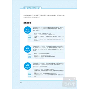 2. 自我診斷掌握弱點│不同於坊間填鴨式的模擬試題,本書的自我診斷能讓你迅速掌握弱點,瞭解不足的地方並加以補強。