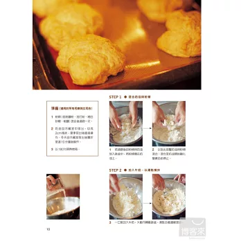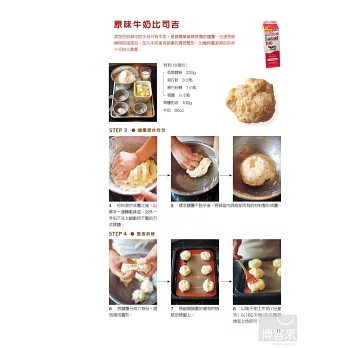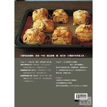 在「司康 & 比司吉」書中,有非常詳細的圖解步驟及做法,只要手邊有低筋麵粉、奶油、牛奶、細白砂糖、鹽、泡打粉這6種材料,就能夠隨時快速製作出各種司康 & 比司吉。