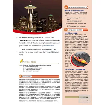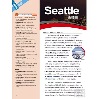 書中每篇內容均附英文導讀音檔。這些都市玩些什麼,怎麼玩,就由專業美籍老師帶你玩遍全美國,讓你邊聽邊說,練習道地美國口音外,還能理解最新時下美國人的用語。