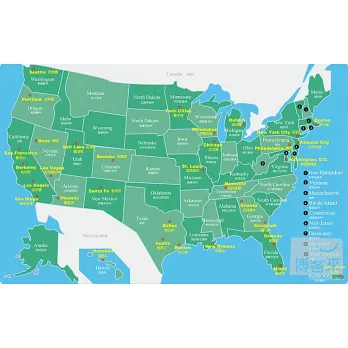 ● 美國拉頁地圖(寬40 cm X高27 cm):美國重點都市位置一目瞭然