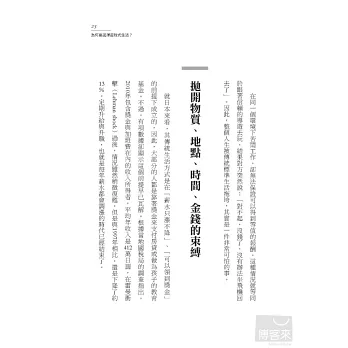 ★透過工作、金錢、生活、時間、思考的各方面訓練,由內而外打造全方位的遊牧式生活。