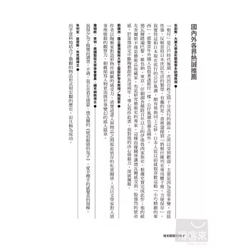 「一開始閱讀就停不下來,往後幾個星期,我沒辦法談別的事……完全陶醉其中。」――克蕾希達.康納立,《旁觀者》,年度選書