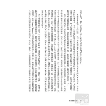 「作者以陶藝家對造形物件細膩的感受力,清楚道盡人與物品之間彼此依存的私密關係;又以文學家對人情事理敏銳的觀察力,細緻描寫人物更迭與世事變幻的感人篇章。」――劉鎮洲,國立台灣藝術大學工藝設計學系教授/陶藝家