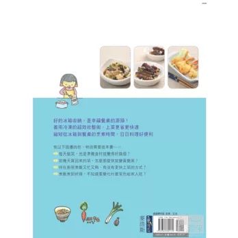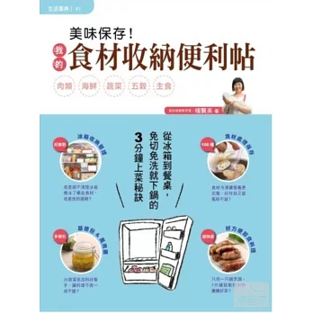 冰箱收納的疑難雜症,讓收納達人楊賢英幫你徹底解決!達人級的食材保鮮術,帶你更聰明地使用冰箱,活用新一代的冷凍收納,保存食材不僅更安心、上菜速度也激增。只要學會達人的前處理法,從冰箱到餐桌,免切免洗就能下鍋,不僅三分鐘上菜快,食材體積縮減更讓冰箱空間常保新鮮、長效不亂。