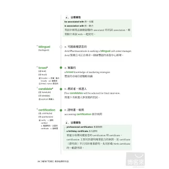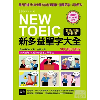 雖然多益考試的題型不外乎是官方公布的「照片描述」、「應答問題」、「單句填空」、「短文填空」那幾種,但是測試考生的考題方向(例如:測試對詞性的熟悉度、對廣播裡面會出現的單字熟悉度等)則會跟著每年考試結果的統計報告不斷地做調整,而且隨著考生能力的增加,多益考試題目也會跟著進化,因此,舊有的試題會漸漸的失去模擬真實考題的能力。有鑒於此,本書《NEW TOEIC新多益單字大全》【實戰測驗更新版】身為多益測驗準備的指標用書,有責任與義務將書中所有已經不適用的模擬試題全數翻新,帶給所有愛用的讀者更新、更準確、能獲得更多分的模擬考題。