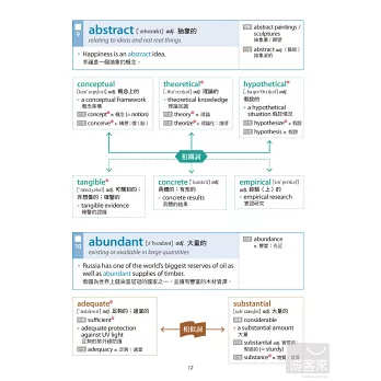 重點補充同義字、相關字、衍生字、搭配字及片語等內容,有效建立單字庫。