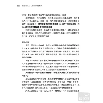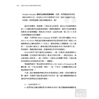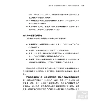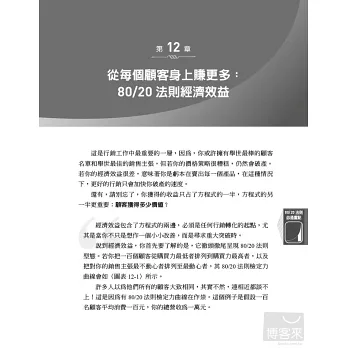 獨創80/20速讀設計:本書精要段落特別設計「80/20 法則必通重點」標誌,忙碌的讀者只要掌握這些內容就能輕鬆吸取八○%關鍵知識,化解行銷困境。