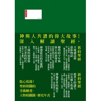 本書由專家以平易近人的用語進行導讀,搭配生動有趣的圖解與專欄解析,是最平易近人的聖經讀本。聖經內容相當豐富多元,從創造世界、人類誕生,到親子、手足糾葛、婆媳問題,以及英雄故事、戰爭、友情、愛情等,堪稱人類文明的寶庫。讀起來就像聽故事一樣有趣!