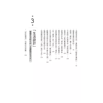 面對變動的時代,固定人生「計劃」已經毫無意義。書裡從「多面性」「關聯」「多據點」3個方面,分享28個生活設計師的案例。