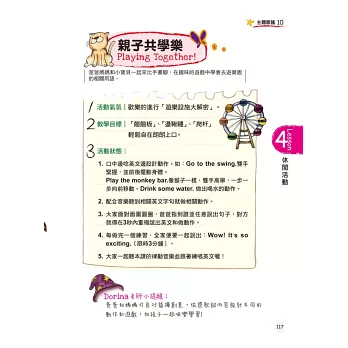 當孩子熟記主題歌曲之後,爸爸媽媽可視情況進行書中的互動教學遊戲,透過遊戲加深孩子的學習印象。
