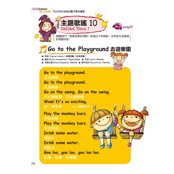全書共收錄21首主題歌曲,搭配每個單元學習重點,和孩子一起跟著輕快的旋律,碰碰跳跳用「唱」的學習英文。