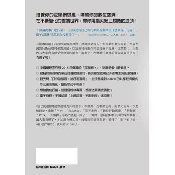此類謎團與迷思混雜充斥的當下,本書將「互聯網思維」的多元面向一次爬梳清楚,串聯「平台」「SoLoMo」「電子商務」「數位行銷溝通」「物聯網」「O2O」「大數據」等熱門議題。除了一一闡釋,也明白解析其間的深刻關聯。讓大家看懂了,才知道各種工具、技術的用處與限制。看懂了,眼下的世界、可行動的維度,就跟著大不同了。