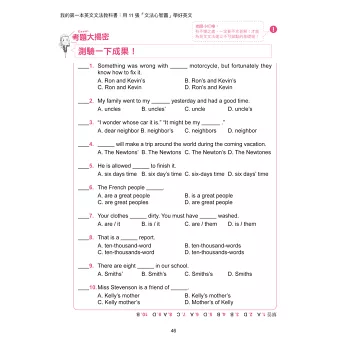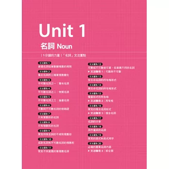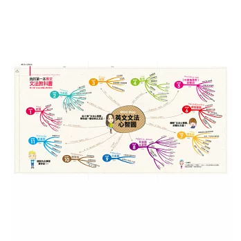 作者們針對不同單元繪製專屬的「文法心智圖」,讓學習者能一目瞭然該章所學的重點內容。讓原本枯燥乏味的英文文法,因「文法心智圖」的出現,替文法增添些許學習中的小亮點。
