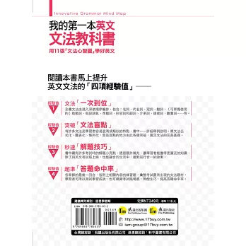 英文文法除了繁多、雜亂無章外,有許多文法是學習者容易混淆或類似的特點,書中一一詳細舉例說明。將文法公式化、圖表化、條列化,曾是盲點的地方由此各個突破,奠定文法的完美基礎。