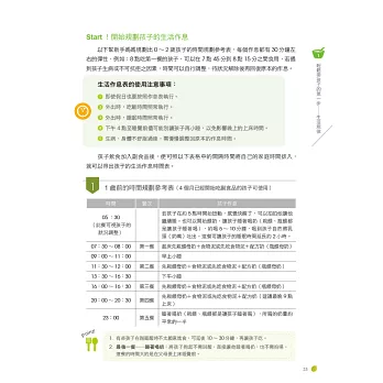 ●吃副食品的時間要正確→將奶和食物泥當作一整餐食用,餐與餐之間間隔4小時,每餐時間控制在30分鐘內。