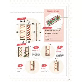 找一個氣氛相符的地方,帶著自製布書衣享受美好的閱讀時光吧!所有範例都附有清晰的照片展示和詳細的圖解說明,更富有全書開數、折口尺寸、左右翻等製作前注意事項提醒,無論書籍、手帳、記事本都能handle,快一起製作全世界獨一無二的書套吧!
