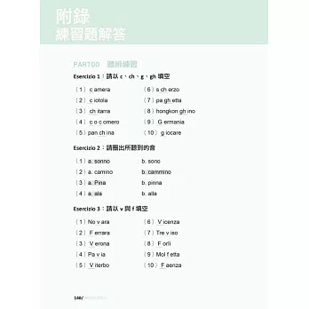 三大單元之後都附有測驗練習,不管是發音、單字、例句或是會話,學完馬上測驗,立即看出學習成效,讓你實際應用義大利語!