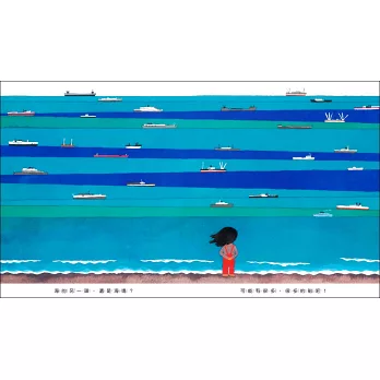 ◎看到這本書時,腦中浮現五味太郎在《時時少年時》書中自述:「少年的工作是觀看。雖然也會感覺、思考、設計、嘗試,但那些終究是副業,本業就只是觀看。」年少的五味太郎一定也曾看著大海,想像海另一頭的世界吧!