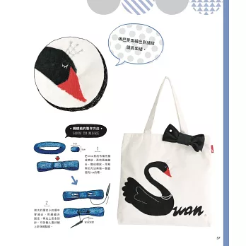 本書以純白托特包為底才,運用拼貼、影印、縫製、繡花、渲染等技巧,