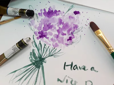 不用準備太多工具,一支筆、一張紙、一盒水彩顏料,就能立即開始。只要少許的時間,就能完成一張明信片大小的畫作,得到放鬆療癒。