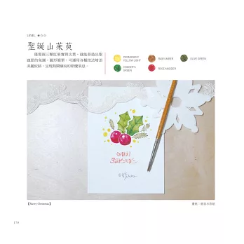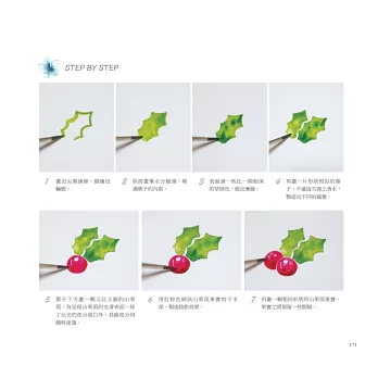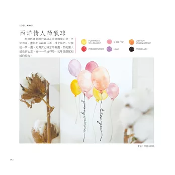 春日的粉紅櫻花,捎來戀愛的氣息,夏日的貝殼海星,帶來消暑的清新沁涼;秋日的火紅楓樹,看見大自然的美麗哀愁;冬日的聖誕,充滿祝福感恩的季節。這本書教的不只是畫出一幅幅水彩圖畫,還有懂得用心體會的生活,每一次的水彩練習都帶來提醒,生命中有這麼多值得細細感受的美麗。