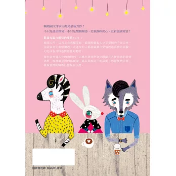 藉由這些擬人化的動物們,吉娜兒帶我們窺見隱藏在人性深處的愛情迷思,妳會看見妳的姊妹淘,甚至是妳自己的身影,然後恍然大悟,發現愛情的解答已經握在手裡。