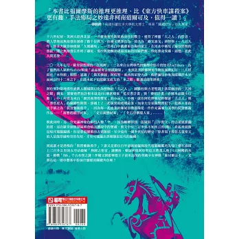 「本書比福爾摩斯的推理更推理、比《東方快車謀殺䅁》更有趣,手法佈局之妙遠非柯南道爾可及,值得一讀!」──傅鶴齡(美國科羅拉多大學航太博士、東森「關鍵時刻」航太專家)
