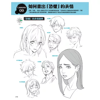 「非常的詳細!光是驚訝的表情也可以分成強中弱,配上圖例表示,其他表情設定也很豐富,值得參考!賣了這本書半年了,在人物表情的描繪上,功力提昇了不少!」-hiyori10