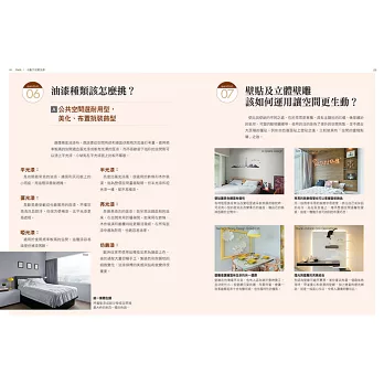古典風、現代風、鄉村風、工業風、混搭風,精選5大設計風格,特別針對牆色、窗戶、客廳、臥室4大類告訴你設計師認為最不可少的佈置重點,幫你快速抓到佈置精髓。