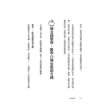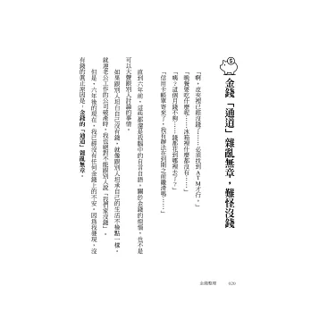 書中內容淺顯易懂,容易上手,我推薦這本《金錢整理》給不知道錢為什麼存不起來的人。─筆記女王 Ada
