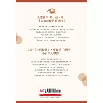 別再照單全收,讓自己的善良變成被傷害的理由!書中38則「小惡精神」,教你堅定面對人間關係、情感、回話、常理、金錢、父母,且在該硬的時候,為自己勇敢反擊!