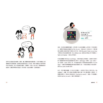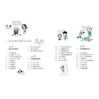 面面老師於國中任教多年,非常熟悉孩子常混淆、寫錯與誤解的地方。在本書中,她整理33個英語常見句型與用法,從基礎的Be動詞、There is/ There are、WH疑問句,到有點難度的虛主詞、被動語態、假設語氣,甚至標點符號、交通工具的搭乘也蒐羅在內,包含所有國中英文的重點句型。面面老師透過這33種句型用法,解釋孩子的英語學習痛點與需求,希望幫助孩子從繪本閱讀中,突破文法關卡。