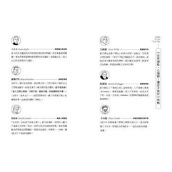 「子非我,安知我不知魚之樂?」莊子說得對,我們的心靈只不過是大自然的一部分。我們之所以知道魚很快樂,是因為驅動我們思辯這個問題的,到頭來也是同一件事情──快樂。讀《莊子》不是很有趣嗎?──大衛.格雷伯(美國人類學家)