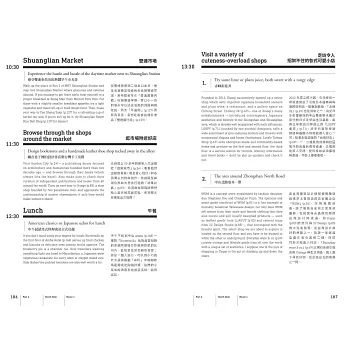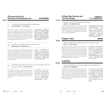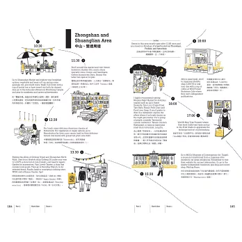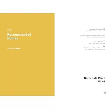 第二部分則提供12條不用動腦也能跟著走的旅遊路線,從台北城東、城西、城南、城北分別抓出12條各具特色的散步路線,跟著手繪地圖探索台北,吃喝玩樂都幫你想透透,沒有比這更貼心又有風格的旅遊路線了。