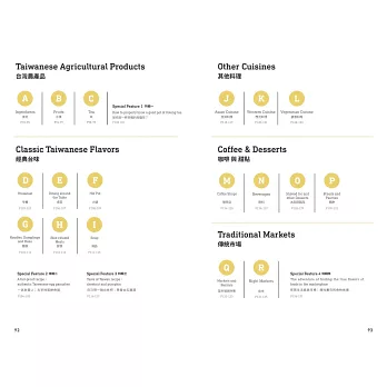本書共分成兩大部份,第一部分包山包海,分門別類挑出300家好店,涵蓋5大類:「藝術與文化」、「設計與生活風格」、「食材與料理」、「音樂與酒精」、「住宿與放鬆」,每個分類下會介紹 6家店/空間,包含訪問、專文和食譜等有趣實用的特輯,那些放不下但難以割捨的店家,則全部收入搭配紙本使用的WebApp裡,希望幫助讀者更了解台北和台灣文化 。